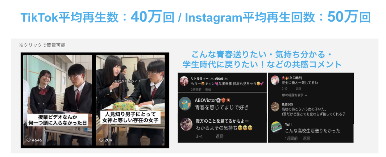 「マジ明日」では、TikTok/Instagramにおいて高い平均再生回数を維持しています。