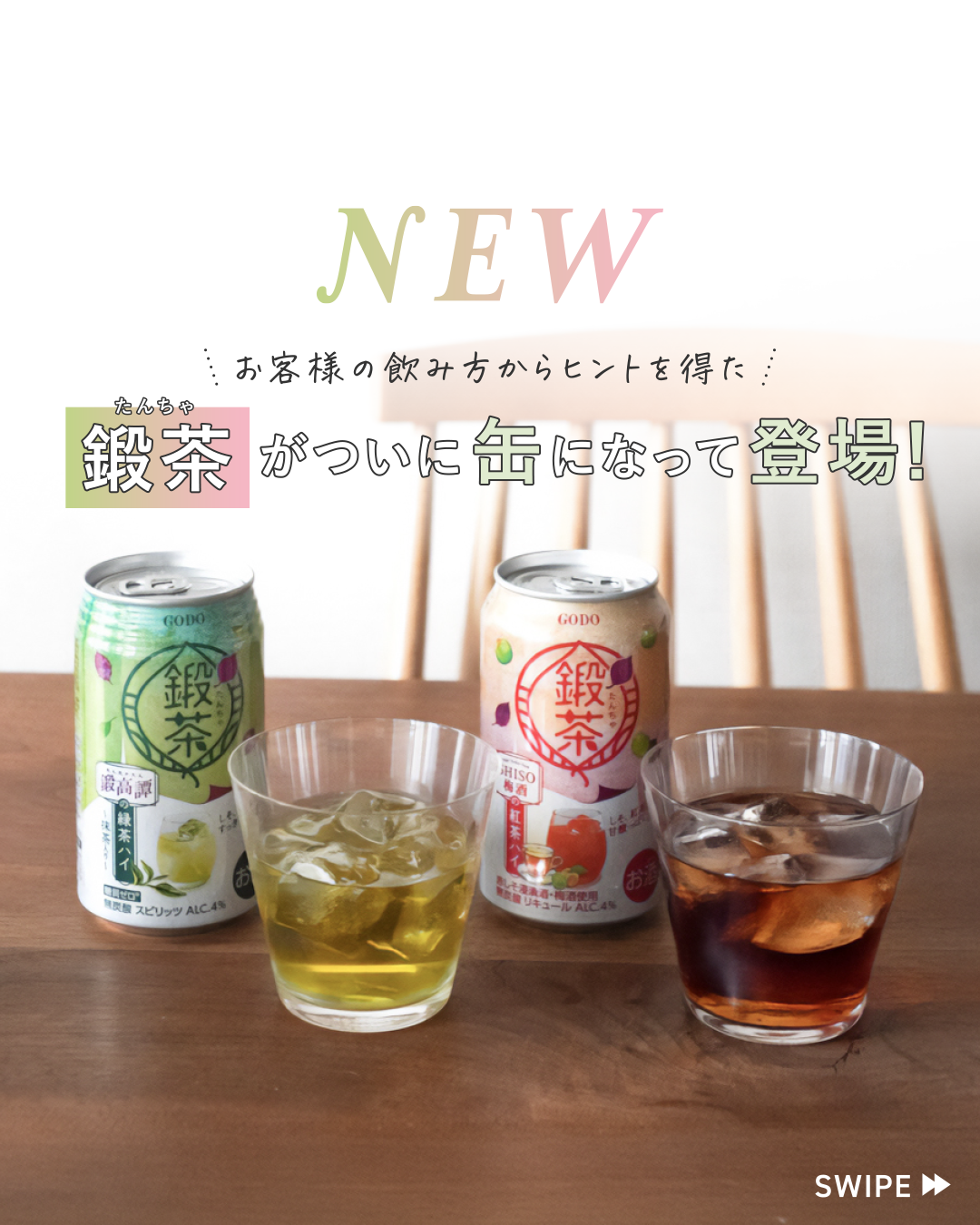 上記のような背景から、合同酒精様は、人気の緑茶割りをはじめとする鍛高譚シリーズのお茶割りを、近年お酒のライト層を中心に絶大な人気を集めるRTD商品として新発売しました。