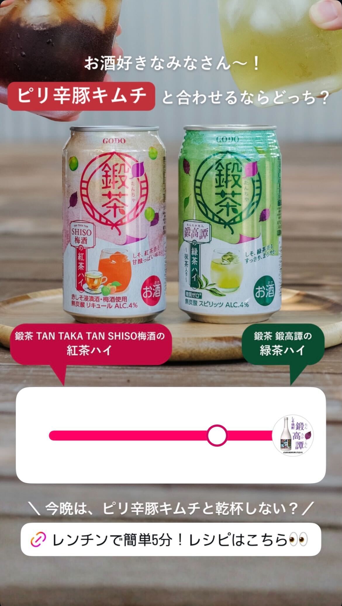 合同酒精様では、鍛高譚のRTD商品として新発売する「鍛茶缶」の認知拡大・販売促進のために、Instagramで複数の施策を展開しました。