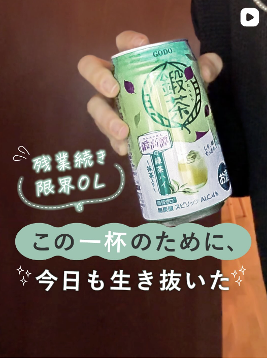 ショートドラマ制作ターゲット層でまだ鍛高譚を認知していない層に向けた鍛茶缶の訴求を役割として、女性・男性双方が共感できるようなストーリーに仕上げました。